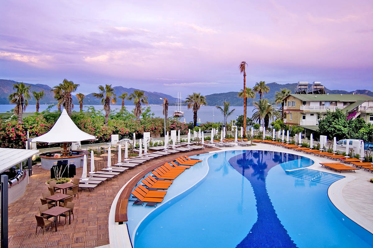 Spa centre, a turkish bath, sauna and massage are available for guests who need a full break after a long day activities at the basement floor. The hotel also offers many a la carte and buffet restaurants where guests can enjoy traditional&local food and fresh seafood. The centre of Marmaris is only 5 km away, Dalaman Airport is at 90 km and the airport of Bodrum at 120 km.