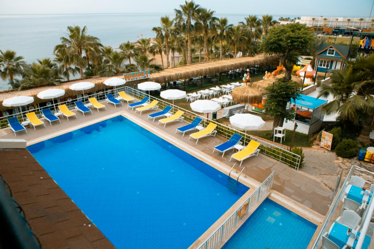 You can enjoy the deep blue waters and the warm Mediterranean sun all day long at the beach of the property, which is located by the sea. The outdoor swimming pool, where you can spend time as an alternative to the beach, will be the address of all-day entertainment for both adults and children with its colorful water slides.