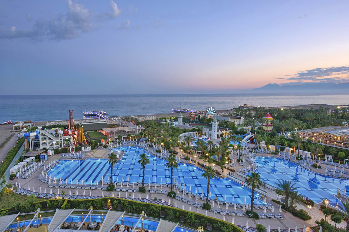 In a flashy modern complex with 4 Chrysler Building style towers, this high-end beachfront Delphin Imperial resort on the Mediterranean Sea is 12 mins drive from the Duden Waterfalls and 22 mins drive from Antalya International Airport, Antalya.