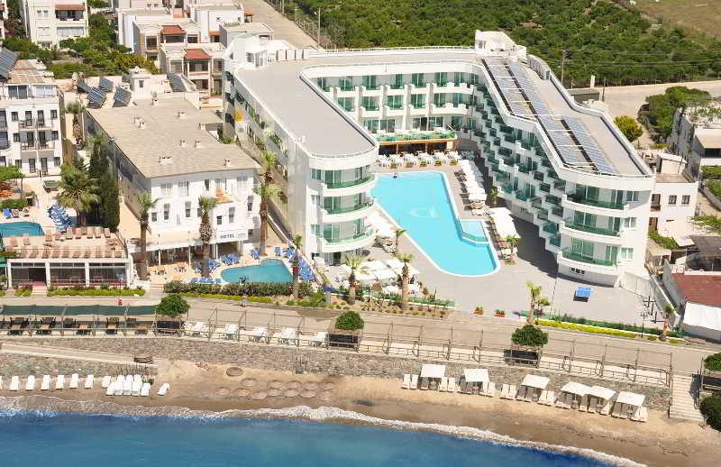 Offering a private beach area on the seafront of Bahcelievler District in Turgutreis. Overlooking a promenade on the Aegean Sea, the hotel is just 2 mins drive from City Center, Bodrum and its normally takes about 50 mins drive to reach the Bodrum International Airport (BJV-Milas) .