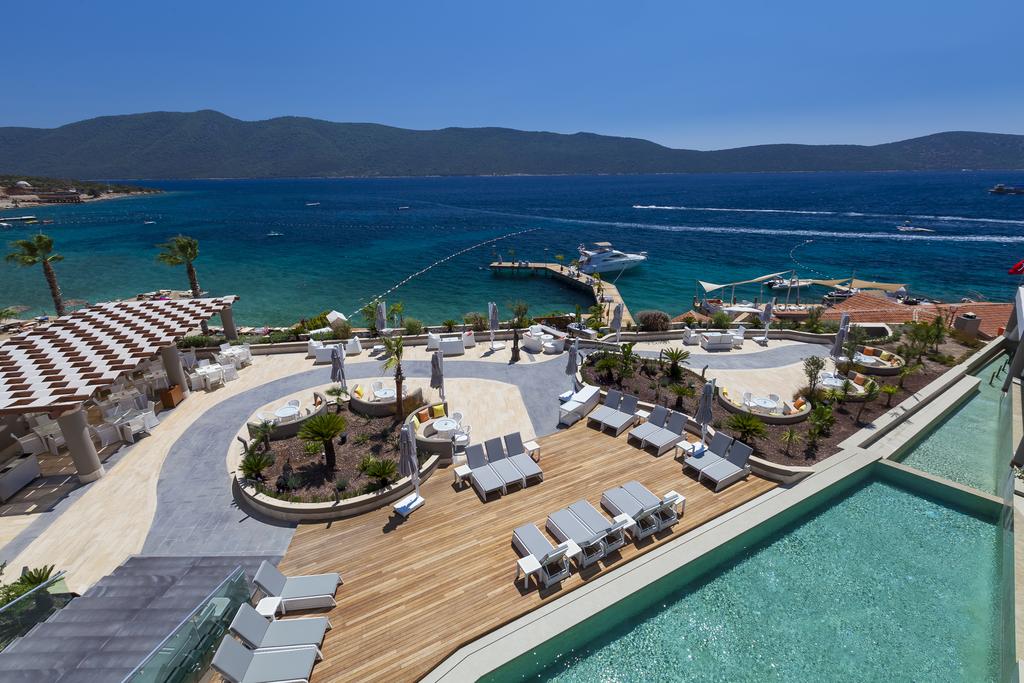 Enjoying a stunning location overlooking the aquamarine waters of the Aegean Sea, this modern and elegantly styled boutique hotel is in a quiet location, approximately 6 km from the cosmopiltan resort of Bodrum and is positioned nextdoor to its' larger, sister hotel.