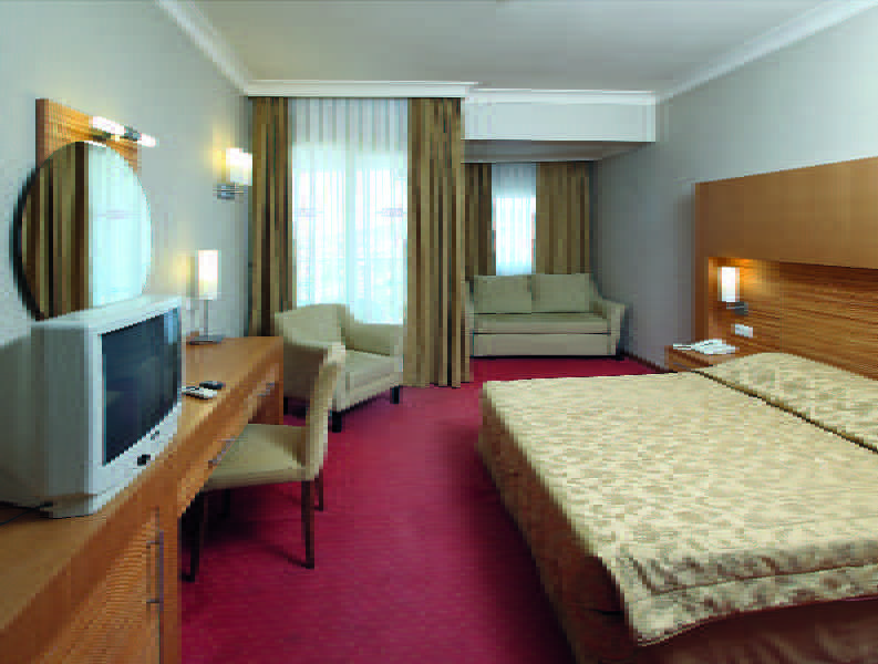 Guests will find restaurants within some 300 m of the hotel and bars and clubs are located around 1 km away. This family friendly club resort is ideal for holidaymakers and business travellers alike. It provides a relaxing yet lively atmosphere with bright and modern décor, excellent accommodation, service and facilities. In addition to the wide range of facilities the hotel offers, a kids' club and a playground is also included. It is truly the perfect choice for couples and families of all ages. Guests can retire at the end of their day to the spacious, modern, comfortable and well-equipped rooms which have one king-size or 2 twin beds plus a sofa bed.