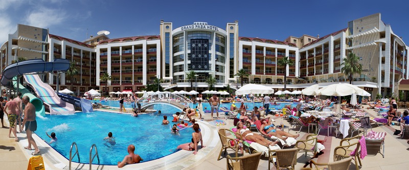 The Grand Pasa Hotel is located in the beautiful and popular resort of Marmaris, Turkey. This hotel was built in 2007 and has 280 modern rooms and facilities. Set within a stunning natural bay surrounded by woods and mountains, Marmaris is one of the largest and most developed resorts in Turkey. The Grand Pasa is 90 km from Dalaman Airport.
