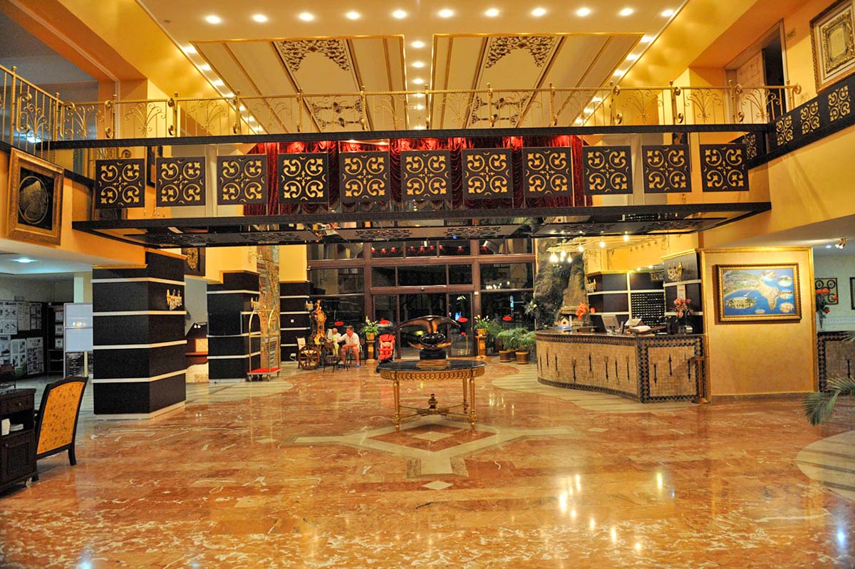 Decorated in an elegant style, the spacious lobby has a marble floor and eastern feel with its arched ceilings and chandeliers. Located 4 km from Avsallar, the hotel is mid-way between the resorts of Side and Alanya on the Mediterranean coast and has public transport running along the main road in front of the hotel.