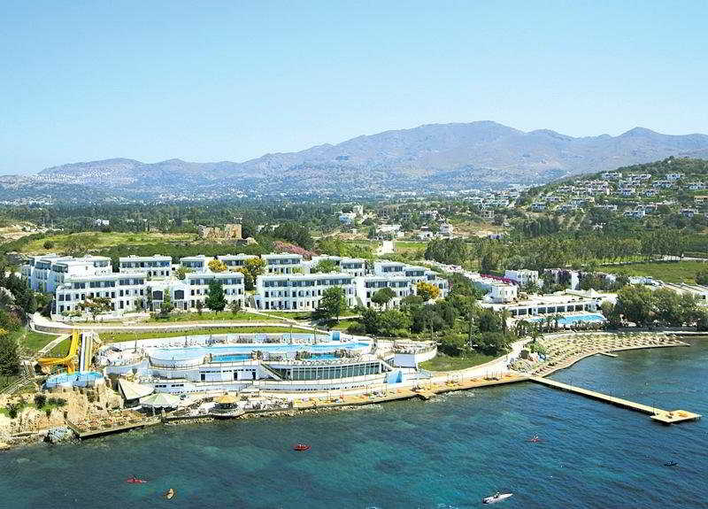Facilities include Spa and wellness centre, fitness centre, 2 Swimming pools, 2 children's pools, 3 restaurants, 4 bars, meeting room, mini aqua park, private sandy beach with wooden platform, water sports, 4 tennis courts, sport activities, mini club, children's playground, all day and night animation, outdoor cinema, internet cafe (extra charge), shopping centre with boutique and market. There is also a daily shuttle to Bodrum.