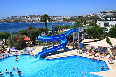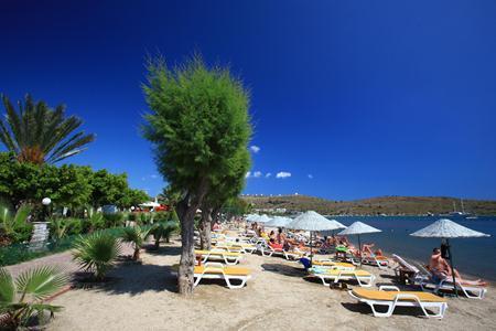 The hotel is located on the beach in the center of Gumbet with local transport passing in front of the property on a regular basis and a taxi stand situated nearby. The cosmopolitan resort of Bodrum, with its large yacht marina and the impressive St Peter's Castle, are both approximately 3 km away and are definitely worth a visit.