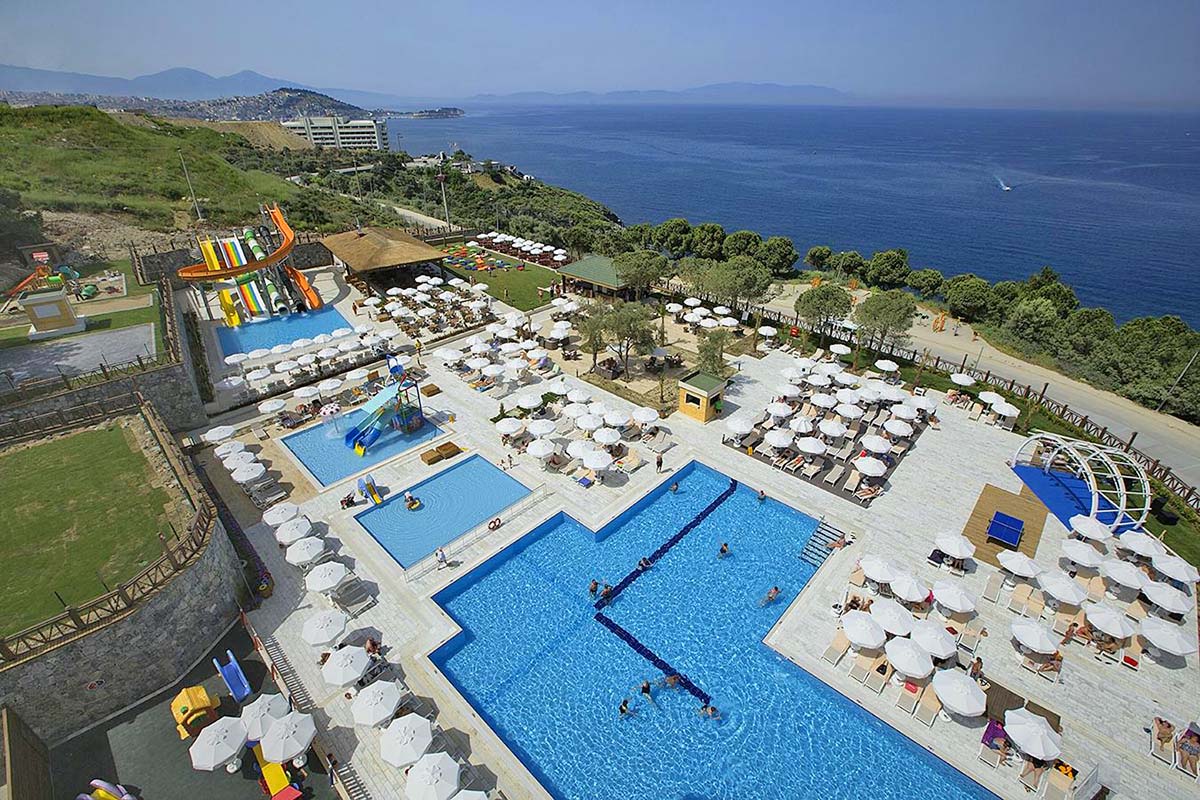 This hotel and resort also operates together with Kusadasi International Golf Club and so will appeal to golfers as well as holiday makers. Providing the unrivalled service and quality of the Wyndham group, guests can benefit from a wealth of excellent amenities for their comfort and convenience including a multi-purpose sports hall, cinema and aqua park. The resort is situated 1.5 km from Kusadasi's popular yacht marina shopping centre and the nearest beach is at Kustur, 2 km away and easily reached by public transport which runs close by.